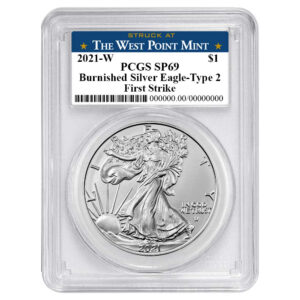 2023-W Burnished $1 American Silver Eagle PCGS SP69 FS Flag Label Red Frame