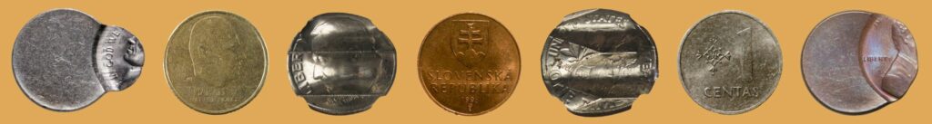 Clashed Dies: Exhibit details of the obverse and reverse of a coin on both sides. It happens when a planchet is not fed into the striking chamber, allowing the dies to strike each other.