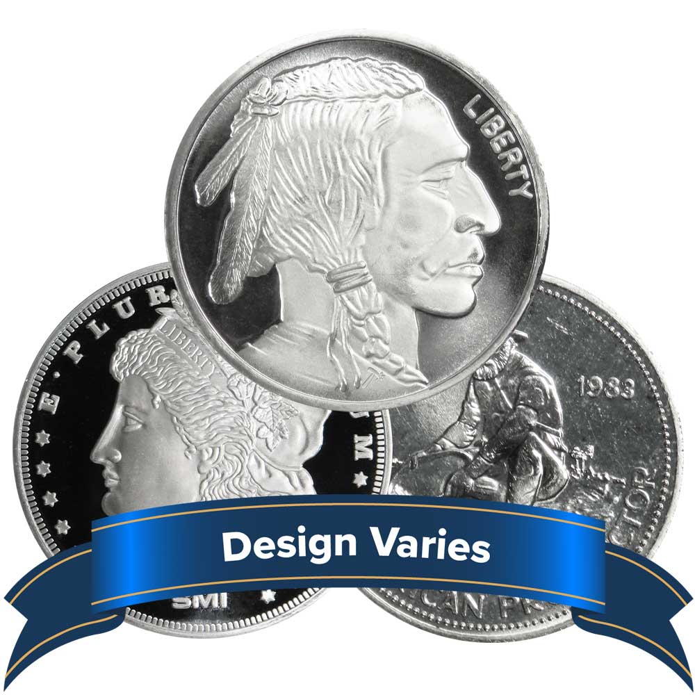 All Silver Rounds will yield 1 Troy Ounce of Silver.  The designs and makers will vary based on our current inventory.