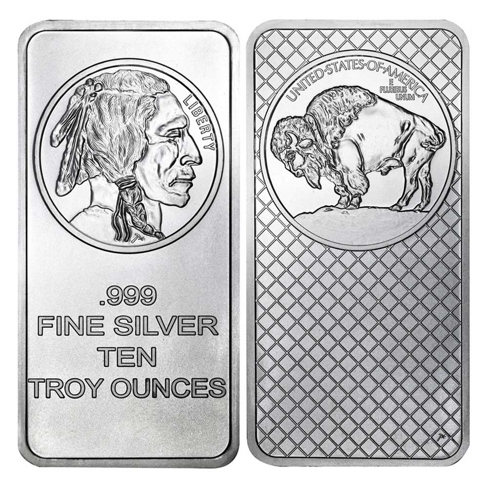 Product History: The 10 Troy oz Buffalo .999 Fine Silver Bar Sealed pays homage to the famous Buffalo Nickel design. First minted in 1913, the Buffalo Nickel featured a Native American profile on the obverse and an American bison on the reverse. This design, created by sculptor James Earle Fraser, is celebrated for its artistry and historic significance. The imagery of the Buffalo Nickel is highly recognizable and cherished by collectors and investors alike.