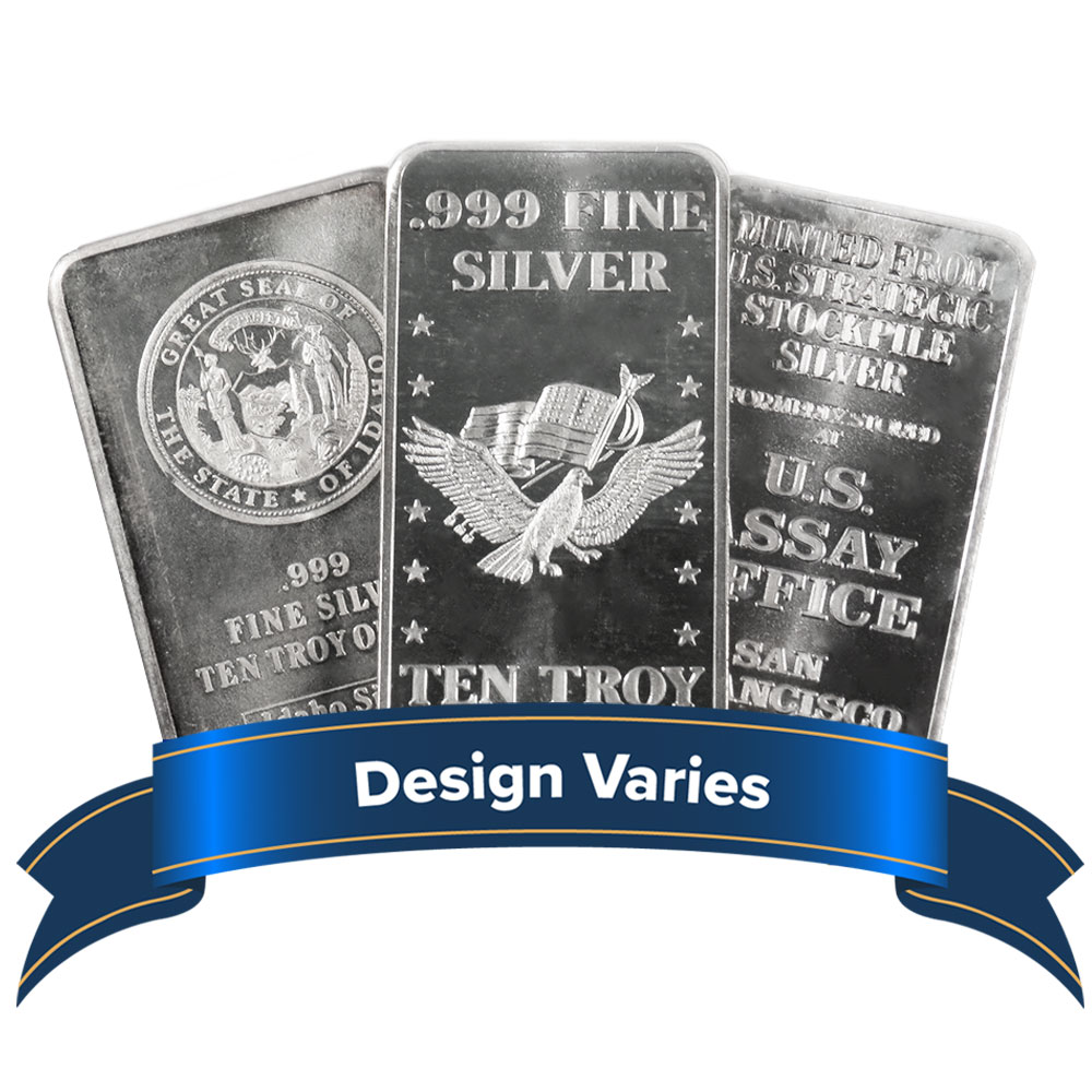 All Silver Bars will yield 10 Troy Ounce of Silver. The designs, condition and makers will vary based on our current inventory.