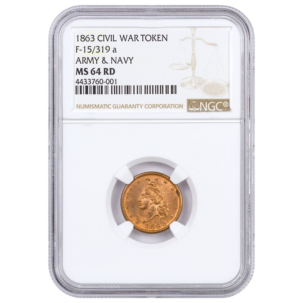 1863 United States Army & Navy Civil War Token NGC MS64 RD In Story Vault Holder