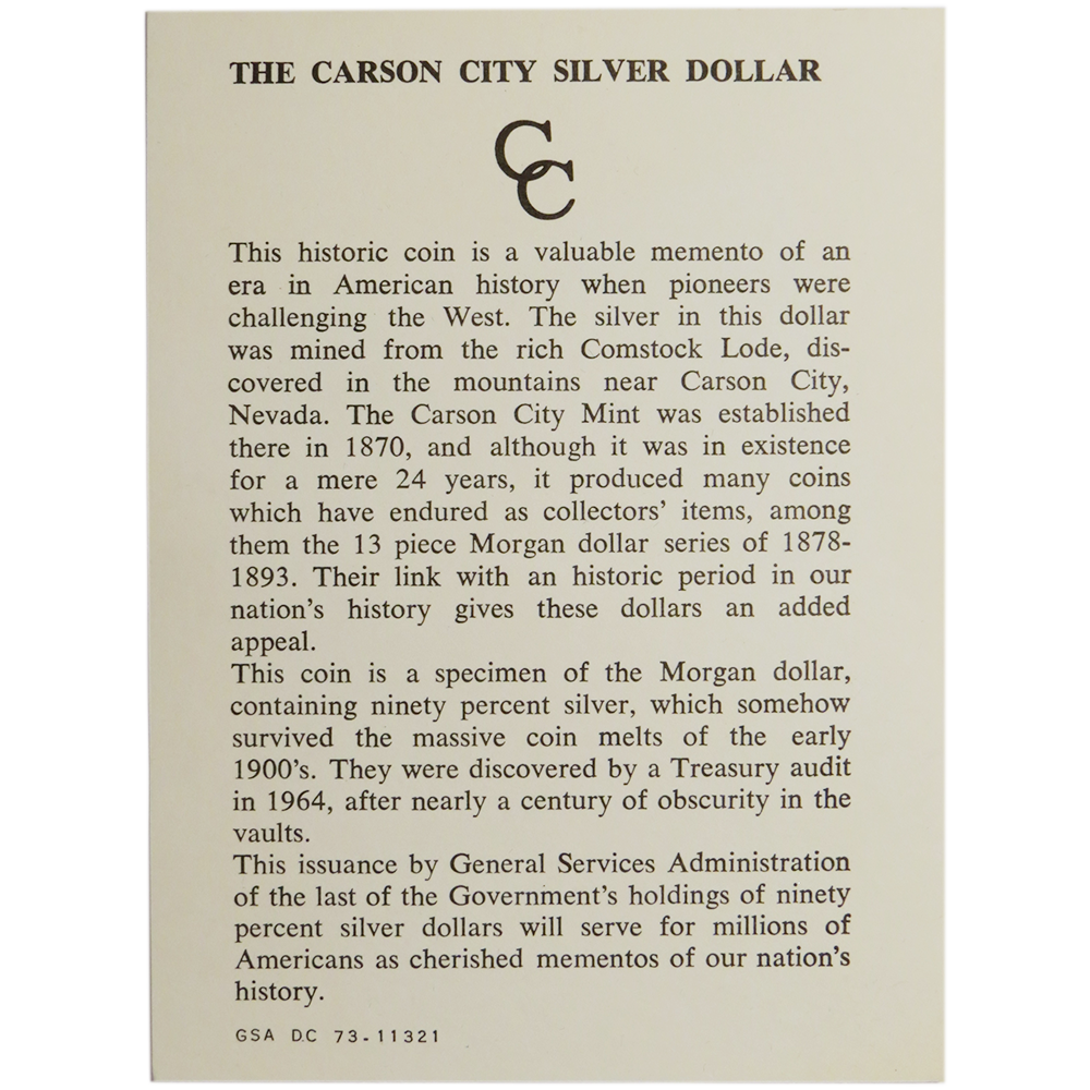 Product History: The 1883-CC $1 Morgan Silver Dollar GSA Uncirculated, Box & COA hails from the era of the wild west, a time of prosperity and a booming silver mining industry in the United States. The Carson City Mint, where this coin was struck, was a hub of American coin production during this era, making this piece a treasure from an influential time in U.S. history.