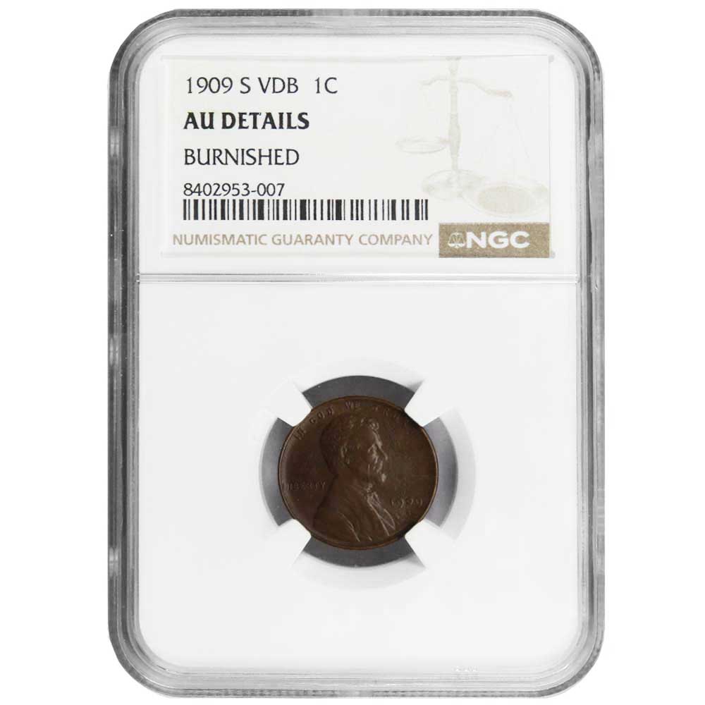 1909-S V.D.B. Lincoln Wheat Cent Key Date NGC AU Details Burnished