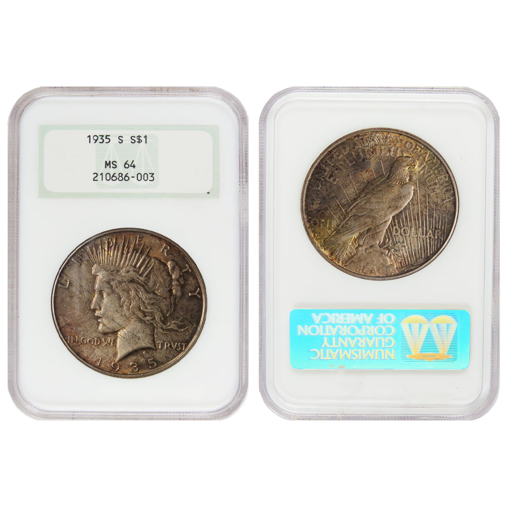 1935-S $1 Peace Dollar Better Date Toned NGC MS64 Fatty Holder