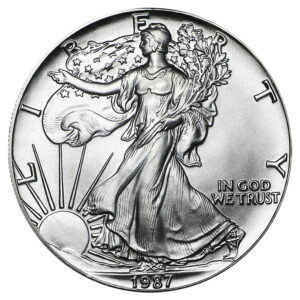 The American Silver Eagle is considered one of the most popular coins worldwide. The creation of these iconic 1 Troy oz of .999 fine silver coins was authorized through the Liberty Coin Act of 1985, and production began in 1986. Known to many as the official bullion coin of the United States, a redesign was introduced by the US Mint in 2021. The original obverse design, based on Adolph A. Weinman’s 1916 “Walking Liberty” half dollar, has been updated with the help of modern technology. Now a closer reflection of Weinman’s original design, the obverse includes the addition of the traditional artist’s mark on the coin itself. As with the obverse, the reverse of the Silver Eagle also received an update in design. Before the summer of 2021, the design was that of the heraldic eagle of the United States, which was created by the former Chief Engraver of the United States Mint, John Mercanti. This design features an American bald eagle behind a heraldic shield with arrows and an olive branch in its talons. The new reverse design, also known as “Eagle Landing,” shows an eagle approaching a landing, carrying an oak branch to add to a nest. This new reverse design was created by one of the U.S. Mint’s Artistic Infusion Program designers, Emily Damstra.