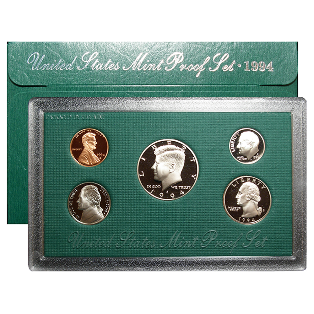 Product Features: The 1994-S U.S. Clad Proof Set includes five proof coins – the Lincoln cent, Jefferson nickel, Roosevelt dime, Washington quarter, and Kennedy half dollar. These coins are made of clad, which comprises a copper-nickel core and copper alloy coating. The set comes in protective packaging to preserve its pristine condition.