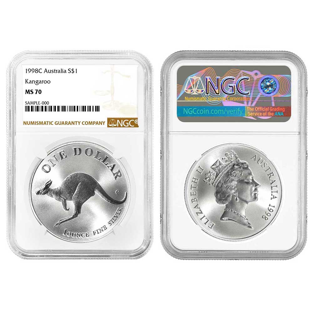 Product History: The 1998-C $1 Australia Kangaroo 1 oz Silver Coin NGC MS70 Brown Label holds a special place in the realm of numismatics, as it is a representation of Australia’s rich natural heritage. As a 1 oz silver coin, it showcases one of the country’s most beloved and iconic animals – the kangaroo. Struck by the Perth Mint in 1998, this coin brings with it over two decades of history and craftsmanship, making it a prized addition to any collection.