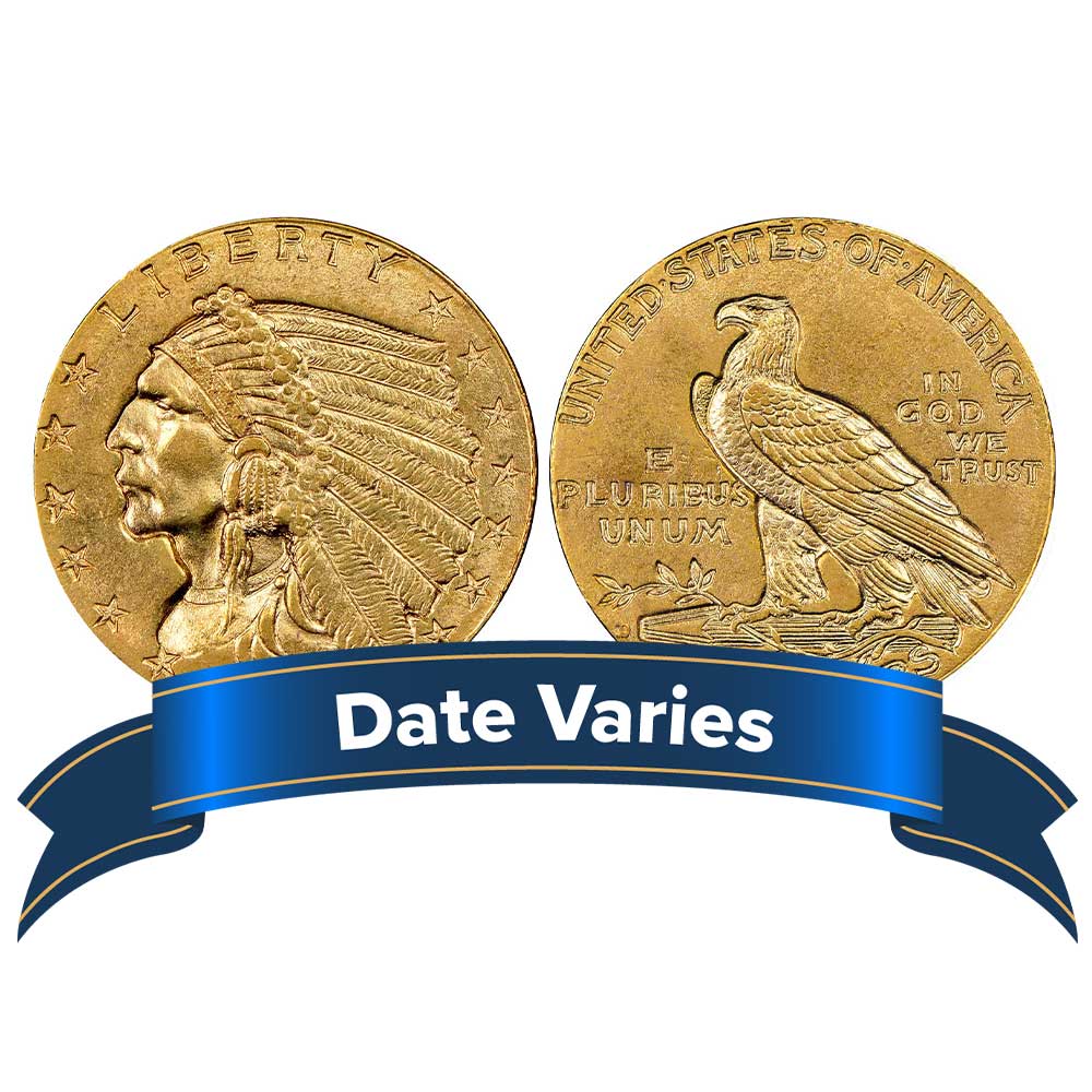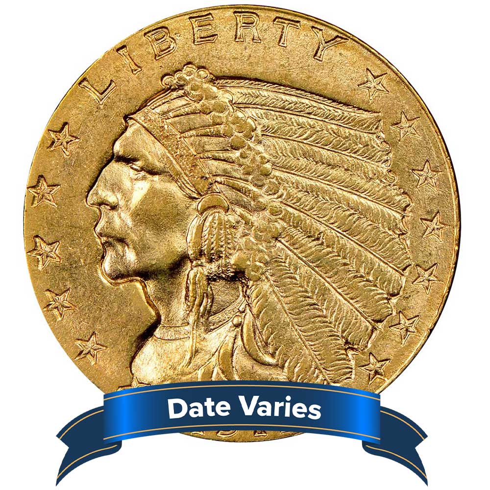$2.50 Indian Head Gold Quarter Eagle 0.1209 ozt Good or Better G+ Random Year