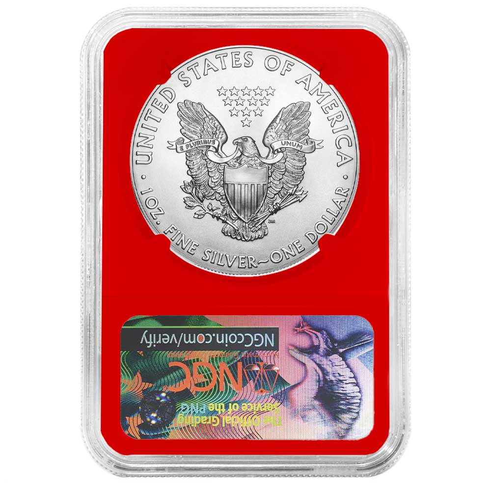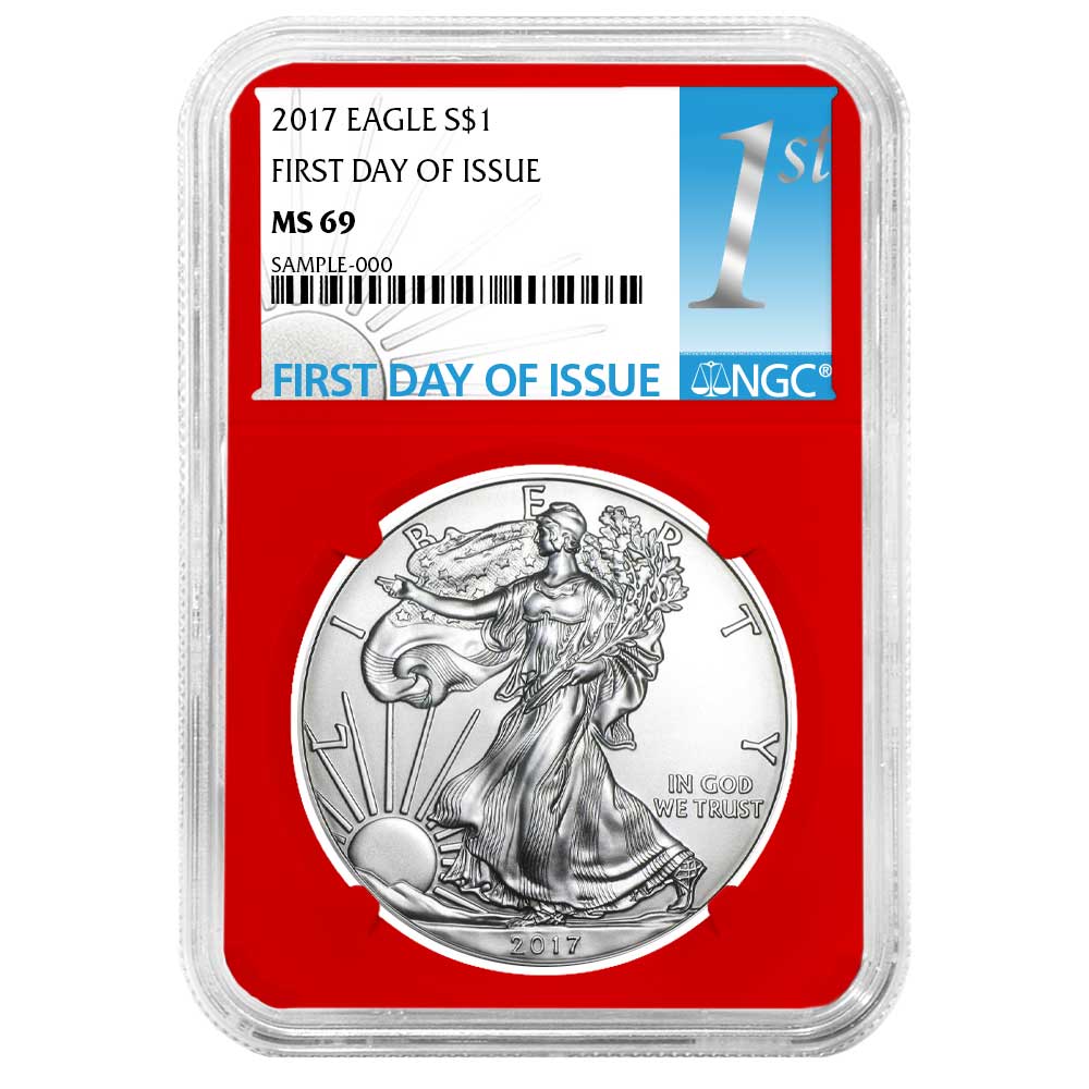 Product Features: This 2017 $1 American Silver Eagle NGC MS69 FDI First Label Red Core contains 1 ounce of .999 fine silver and is encased in protective packaging to ensure its pristine condition upon arrival.