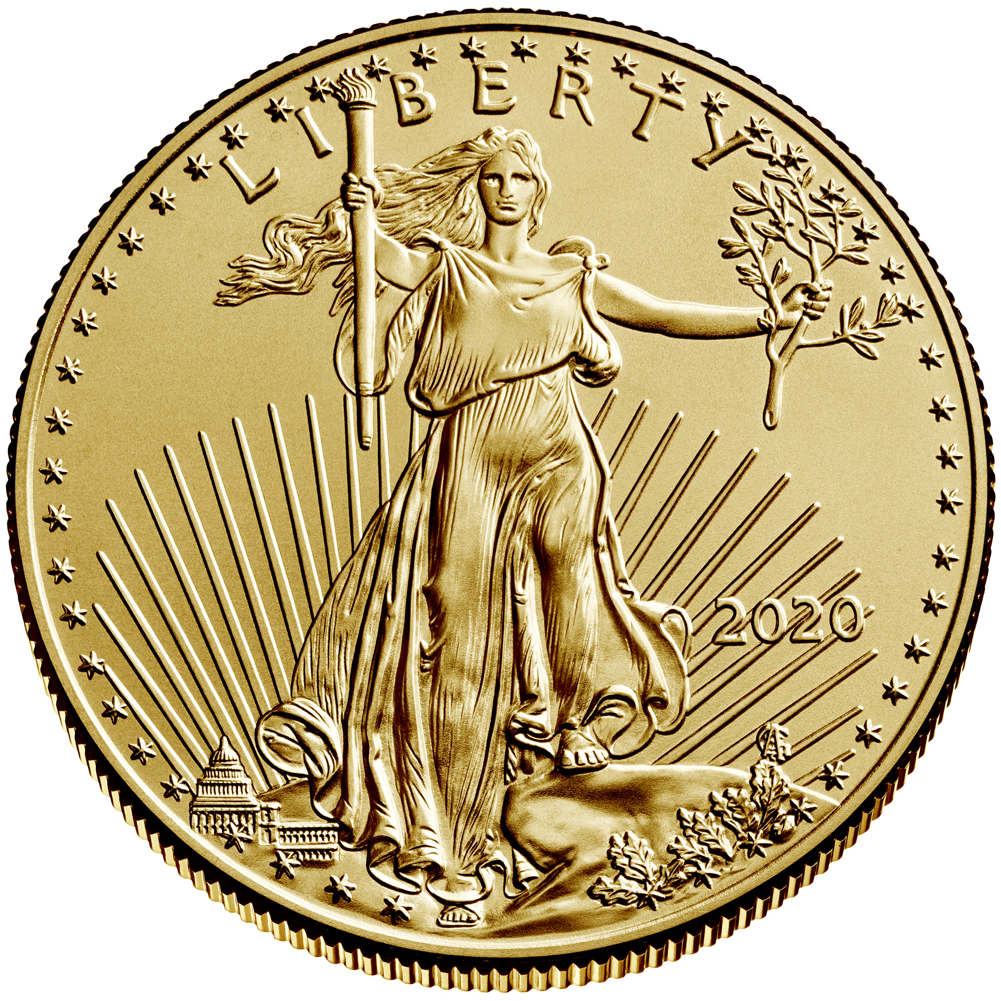 Please note that there is no mint mark present on these coins. The mark you see is the artist’s initials. American Gold Eagles feature the mint mark on the obverse of the coin directly under the year to the right.