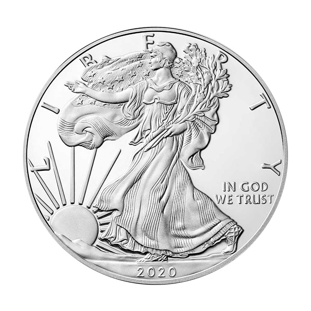 The American Silver Eagle is considered one of the most popular coins worldwide. The creation of these iconic 1 Troy oz of .999 fine silver coins was authorized through the Liberty Coin Act of 1985, and production began in 1986. In 2021, a redesign was introduced by the U.S. Mint. The original obverse design, based on Adolph A. Weinman’s 1916 “Walking Liberty” Half Dollar, has been updated with the help of modern technology. Now a closer reflection of Weinman’s original design, the obverse includes the addition of his traditional artists’ mark on the coin itself. The reverse of Silver Eagle also received an updated form created by one of the U.S. Mints Artistic Infusion Program Designers, Emily Damstra. Now known as “Eagle Landing,” the image depicts an eagle approaching a landing, carrying an oak branch to add to its nest.
