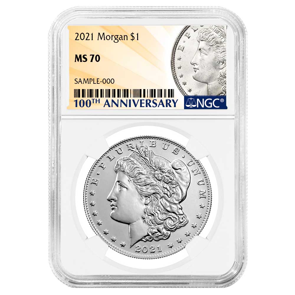 2021 $1 Morgan Silver Dollar NGC MS70 100th Anni. Label