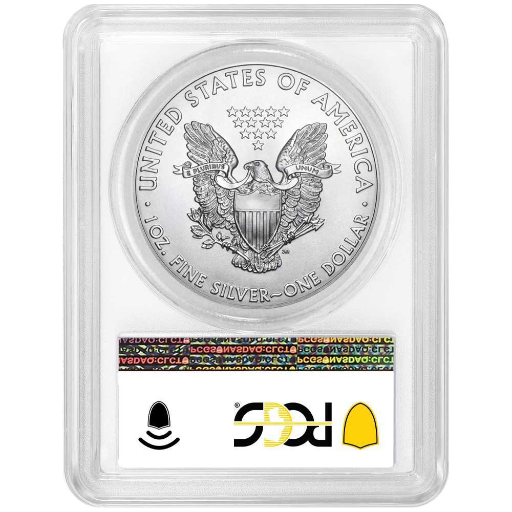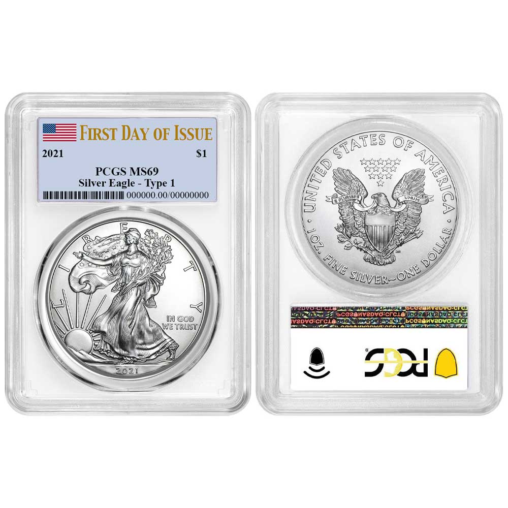 2021 $1 Type 1 American Silver Eagle PCGS MS69 FDOI Flag Label White Frame