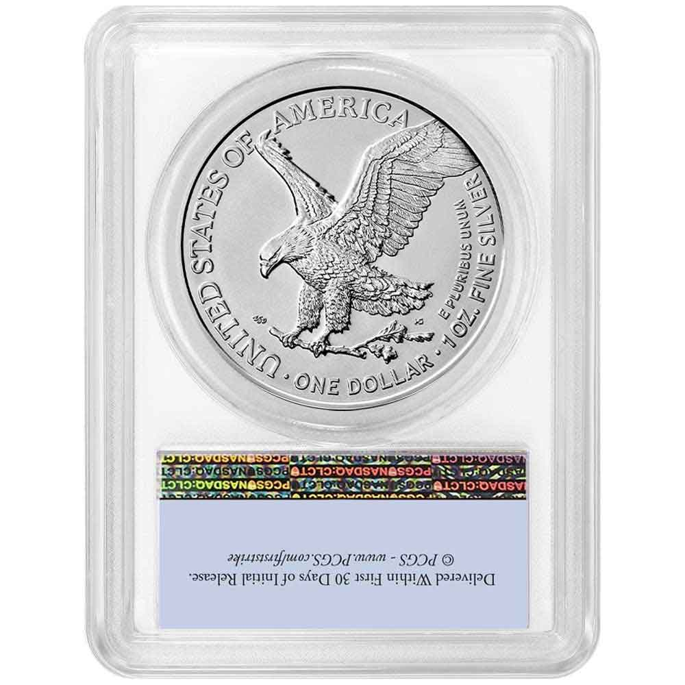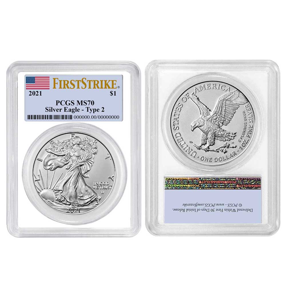 The American Silver Eagle is considered one of the most popular coins worldwide. The creation of these iconic 1 Troy oz of .999 fine silver coins was authorized through the Liberty Coin Act of 1985, and production began in 1986. Known to many as the official bullion coin of the United States, a redesign was introduced by the US Mint in 2021. The original obverse design, based on Adolph A. Weinman’s 1916 “Walking Liberty” half dollar, has been updated with the help of modern technology. Now a closer reflection of Weinman’s original design, the obverse includes the addition of the traditional artist’s mark on the coin itself. As with the obverse, the reverse of the Silver Eagle also received an update in design. Before the summer of 2021, the design was that of the heraldic eagle of the United States, which was created by the former Chief Engraver of the United States Mint, John Mercanti. This design features an American bald eagle behind a heraldic shield with arrows and an olive branch in its talons. The new reverse design, also known as “Eagle Landing,” shows an eagle approaching a landing, carrying an oak branch to add to a nest. This new reverse design was created by one of the U.S. Mint’s Artistic Infusion Program designers, Emily Damstra.