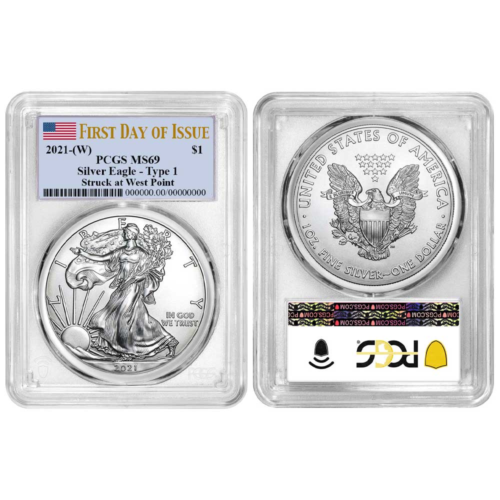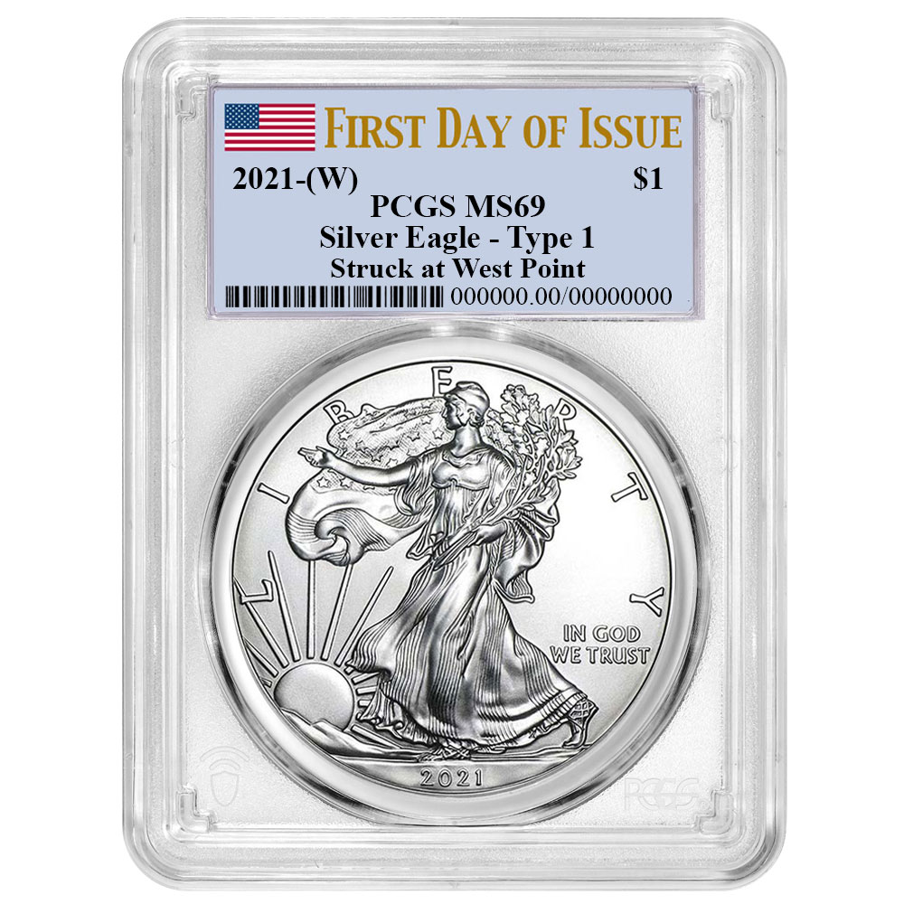 2021 (W) $1 Type 1 American Silver Eagle PCGS MS69 FDOI Flag Label