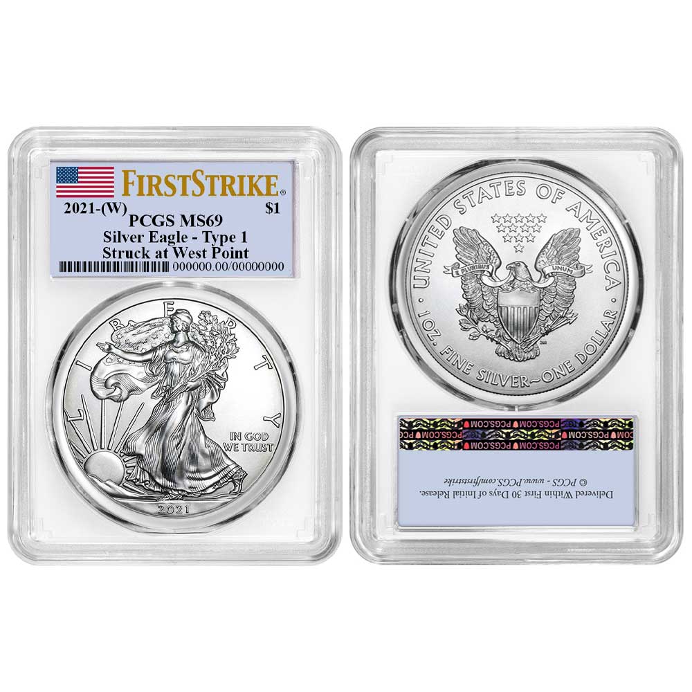 2021 (W) $1 Type 1 American Silver Eagle PCGS MS69 FS Flag Label White Frame