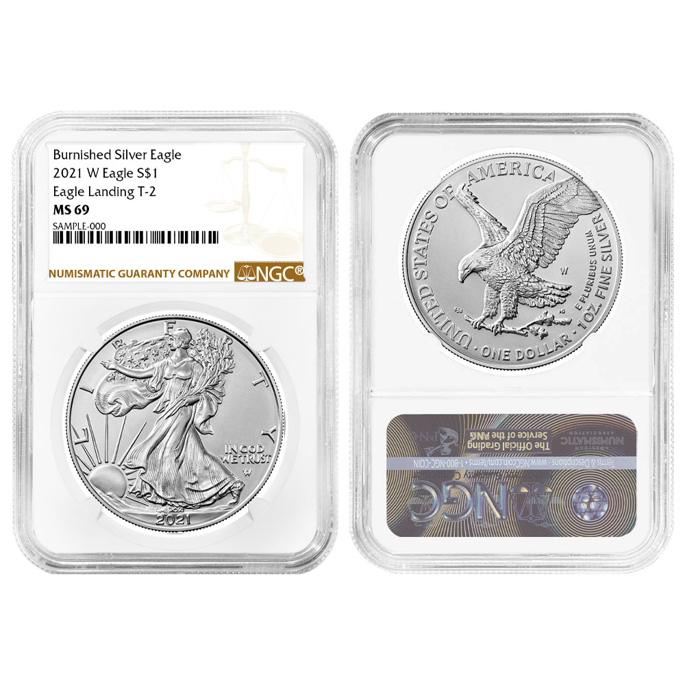2021-W Burnished $1 Type 2 American Silver Eagle NGC MS69 FDI First Label