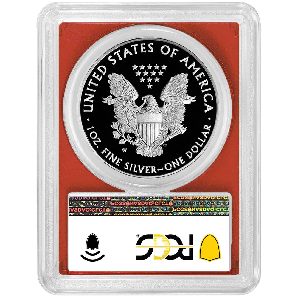 Product History: The 2021-W Proof $1 Type 1 American Silver Eagle PCGS PR70DCAM FDOI Flag Label Red Frame holds great significance as it is part of the Type 1 redesign, featuring an enhanced security feature. It marks a significant milestone in American numismatic history, embodying the enduring legacy of the iconic American Silver Eagle series.