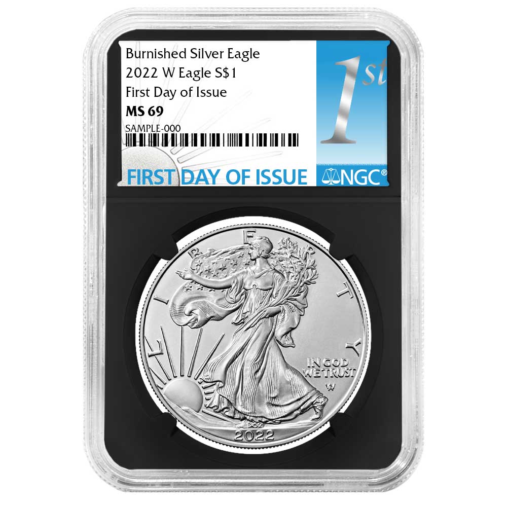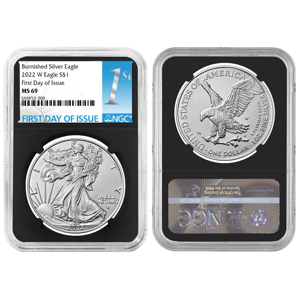 2022-W Burnished $1 American Silver Eagle NGC MS69 FDI First Label Retro Core