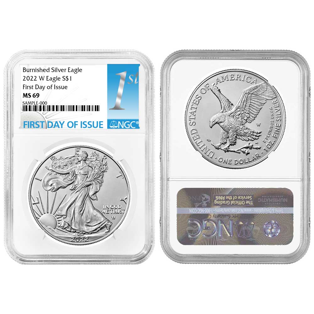 2022-W Burnished $1 American Silver Eagle NGC MS69 FDI First Label