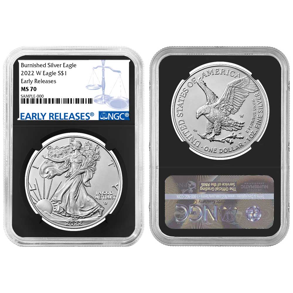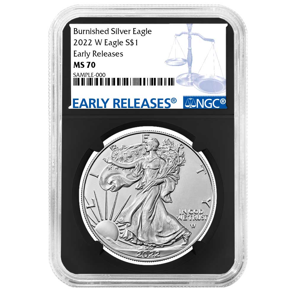 2022-W Burnished $1 American Silver Eagle NGC MS70 ER Blue Label Retro Core
