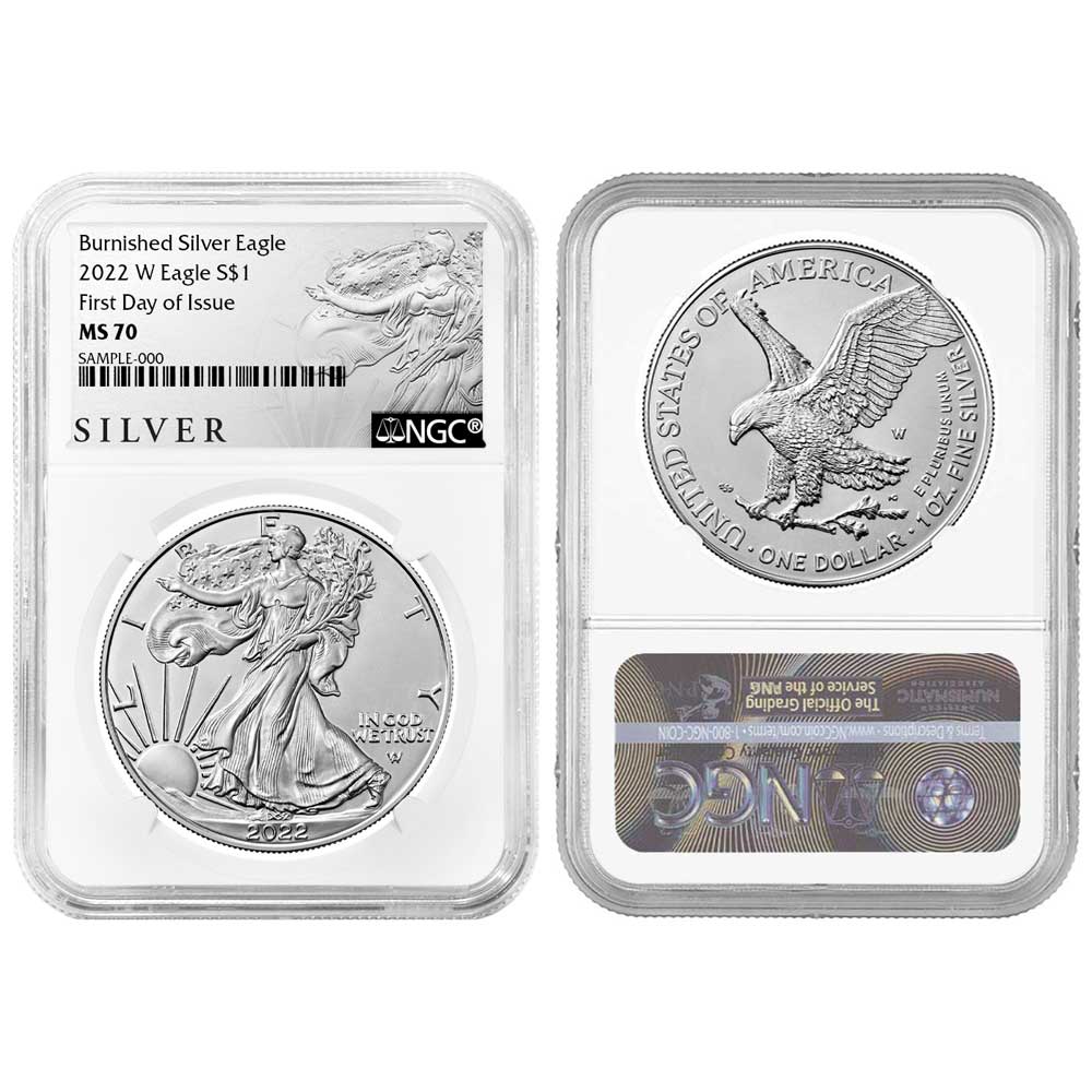 2022-W Burnished $1 American Silver Eagle NGC MS70 FDI ALS Label