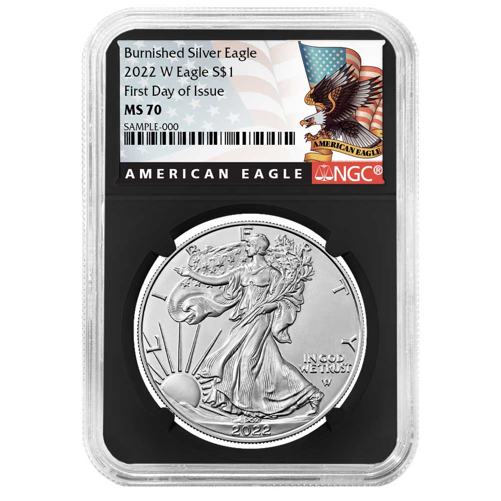 2022-W Burnished $1 American Silver Eagle NGC MS70 FDI Black Label Retro Core