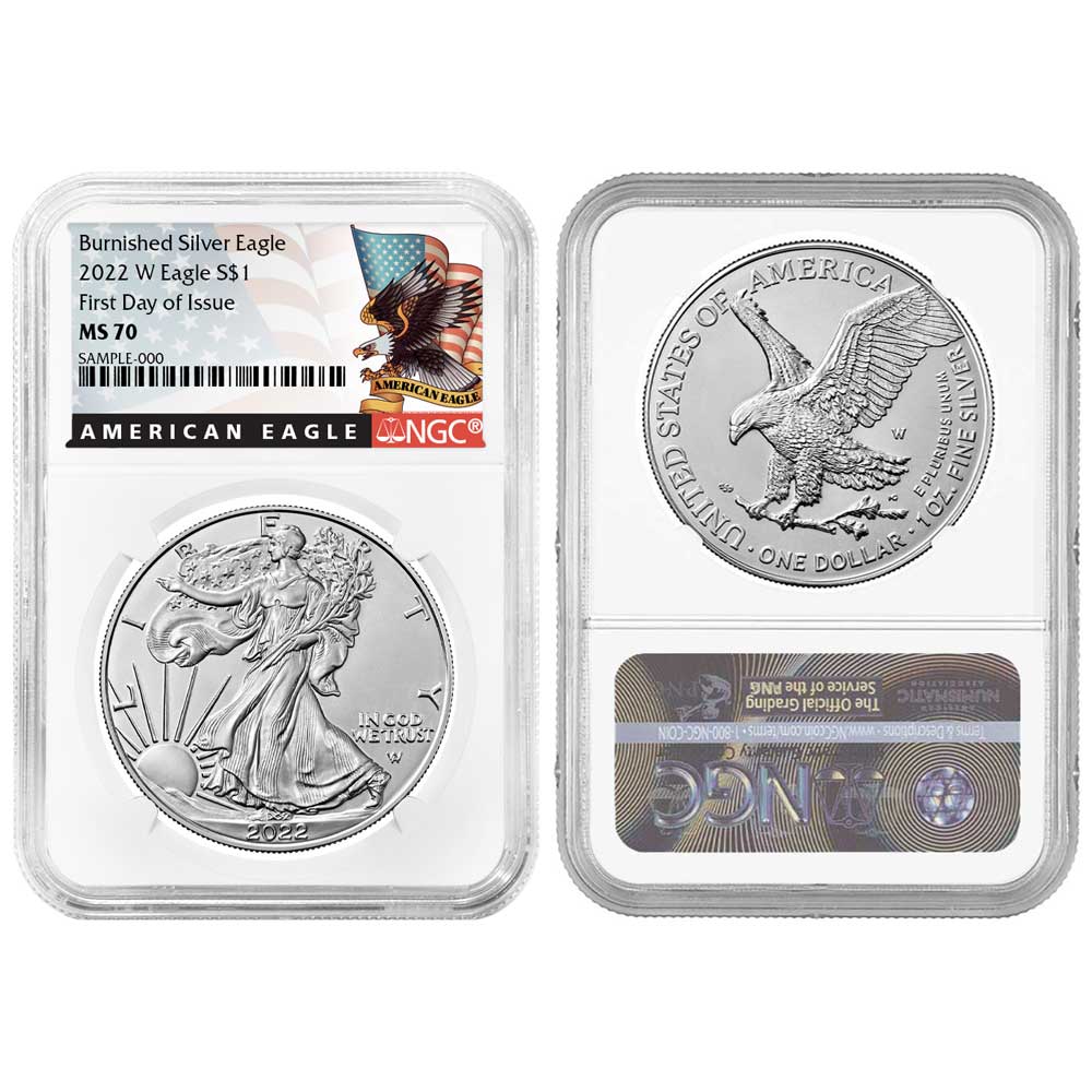2022-W Burnished $1 American Silver Eagle NGC MS70 FDI Black Label
