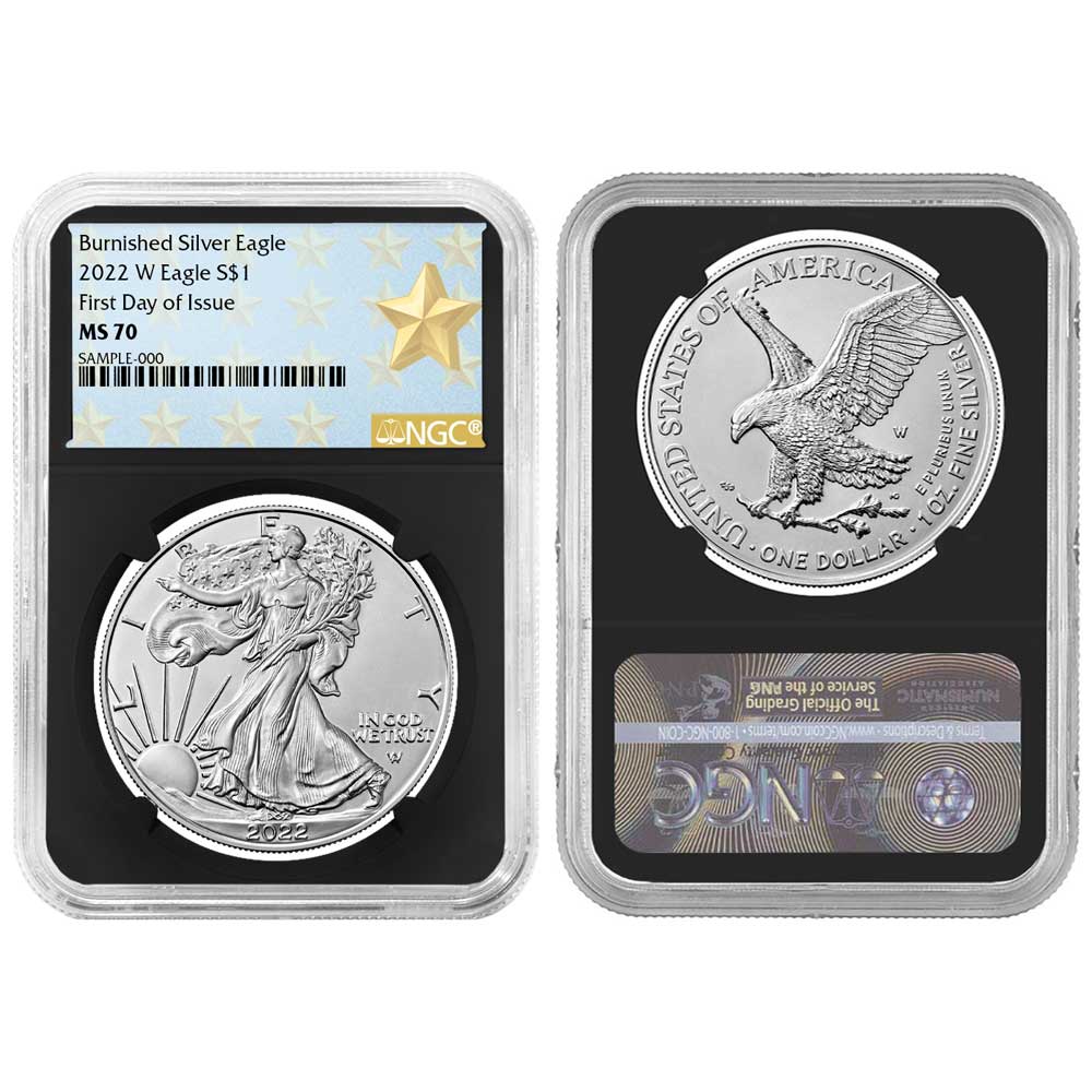 2022-W Burnished $1 American Silver Eagle NGC MS70 FDI West Point Star Label Retro Core