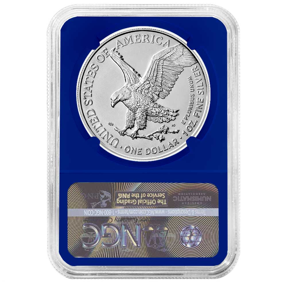 The American Silver Eagle is considered one of the most popular coins worldwide. The creation of these iconic 1 Troy oz of .999 fine silver coins was authorized through the Liberty Coin Act of 1985, and production began in 1986. Known to many as the official bullion coin of the United States, a redesign was introduced by the US Mint in 2021. The original obverse design, based on Adolph A. Weinman’s 1916 “Walking Liberty” half dollar, has been updated with the help of modern technology. Now a closer reflection of Weinman’s original design, the obverse includes the addition of the traditional artist’s mark on the coin itself. As with the obverse, the reverse of the Silver Eagle also received an update in design. Before the summer of 2021, the design was that of the heraldic eagle of the United States, which was created by the former Chief Engraver of the United States Mint, John Mercanti. This design features an American bald eagle behind a heraldic shield with arrows and an olive branch in its talons. The new reverse design, also known as “Eagle Landing,” shows an eagle approaching a landing, carrying an oak branch to add to a nest. This new reverse design was created by one of the U.S. Mint’s Artistic Infusion Program designers, Emily Damstra.