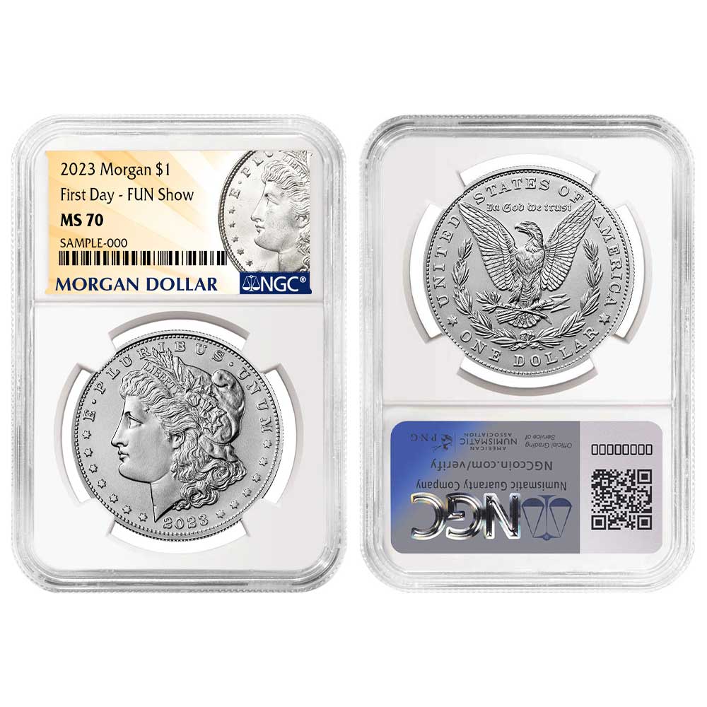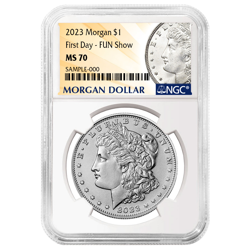 Product History: The 2023 $1 Morgan Silver Dollar NGC MS70 FDI Morgan Label Fun Show Releases is a tribute to the iconic Morgan Silver Dollar, originally minted from 1878 to 1904. The Morgan Silver Dollar holds a special place in American history as one of the most sought-after coins by collectors and investors alike. This modern release carries on the legacy of the classic Morgan design while showcasing a 2023 date mark.