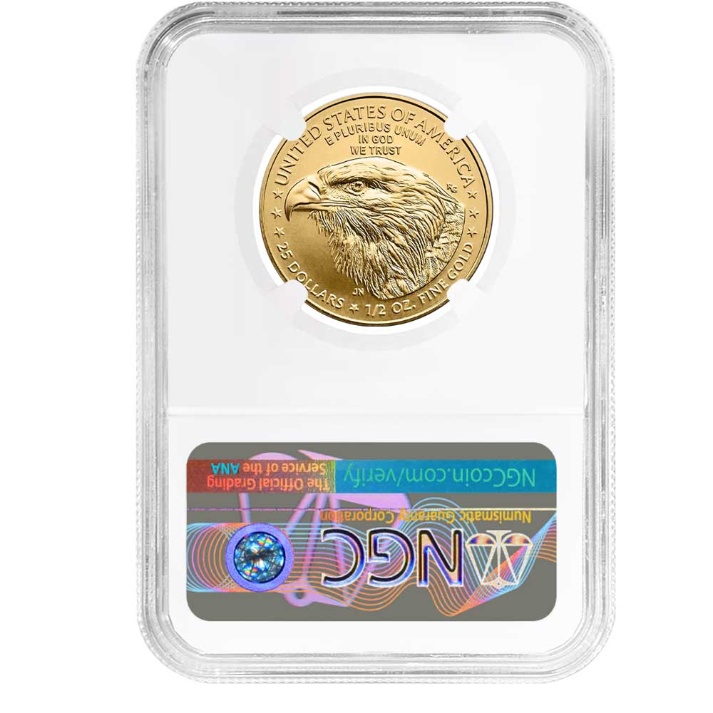 2023 $25 American Gold Eagle 1/2 oz NGC MS70 FDI Mike Castle Flag Label