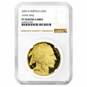 Unveiled in 2006, the American Gold Buffalo was the first 24-karat gold coin released from the U.S. Mint. Struck at the West Point Mint, these beautiful gold coins showcase our American history in 1 oz of .9999 fine gold. Though marked with a face value of $50, the actual value of these coins is based on the current gold bullion market and production costs. These striking coin images originated from the Buffalo or Indian Head nickel designs minted from 1913-1938. Created by sculptor James Earle Fraser, the obverse of these coins features a Native American portrait that is intended to honor the legacy of our land’s first inhabitants. Anecdotal stories claim the reverse design was modeled after “Black Diamond,” a resident of the New York Central Park Zoo. To many, the power of the American Buffalo embodies the pioneering spirit of the nation’s westward expansion.