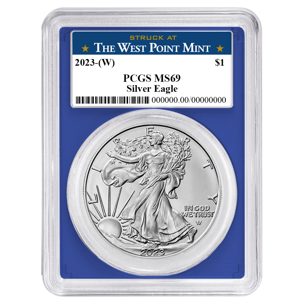 2023 (W) $1 American Silver Eagle PCGS MS69 West Point Label Blue Frame