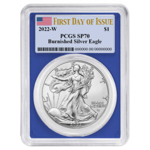 2023-W Burnished $1 American Silver Eagle PCGS SP69 FS Flag Label Red Frame