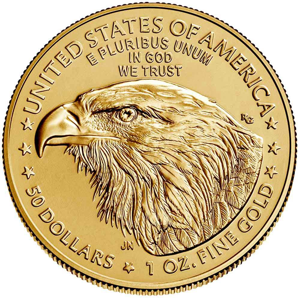 In 2021 United States Mint Artistic Infusion Program designer Jennie Norris created the redesign for the reverse of these coins. This new design is referred to as “Eagle Portrait” and portrays an eagle bust. The American Gold Eagle is offered in 4 sizes, 1 oz, 1/2 oz, 1/4 oz and 1/10 oz, making it popular amongst collectors seeking to add Gold Eagles to their collections.