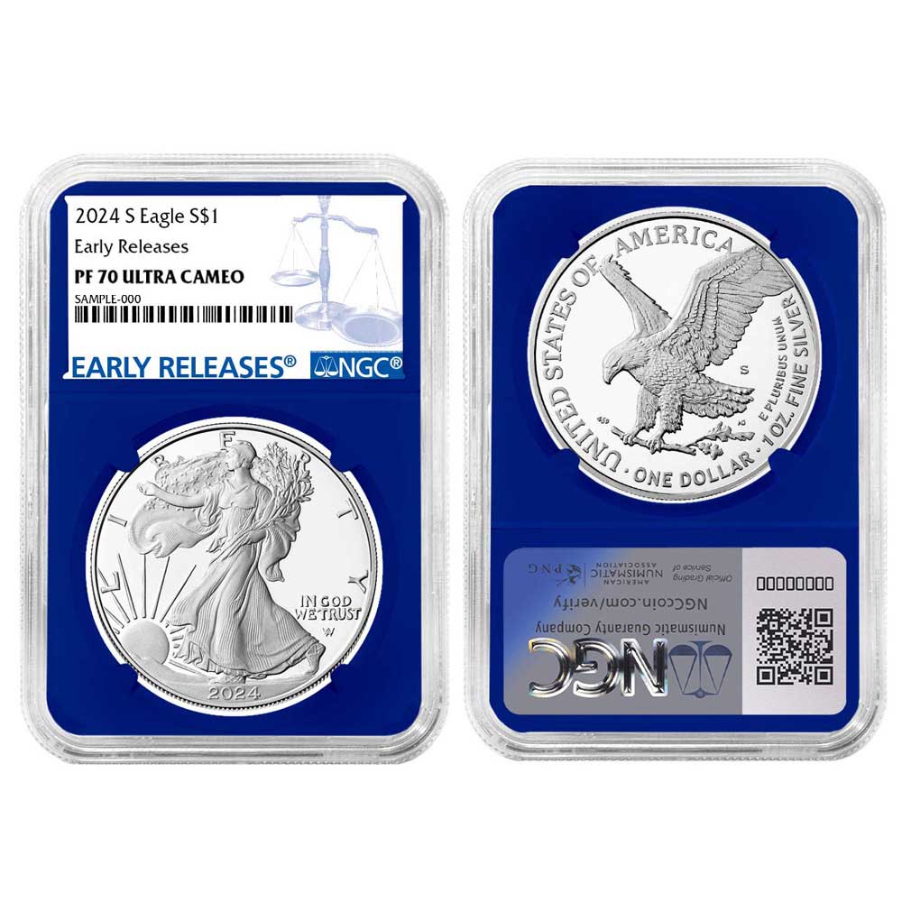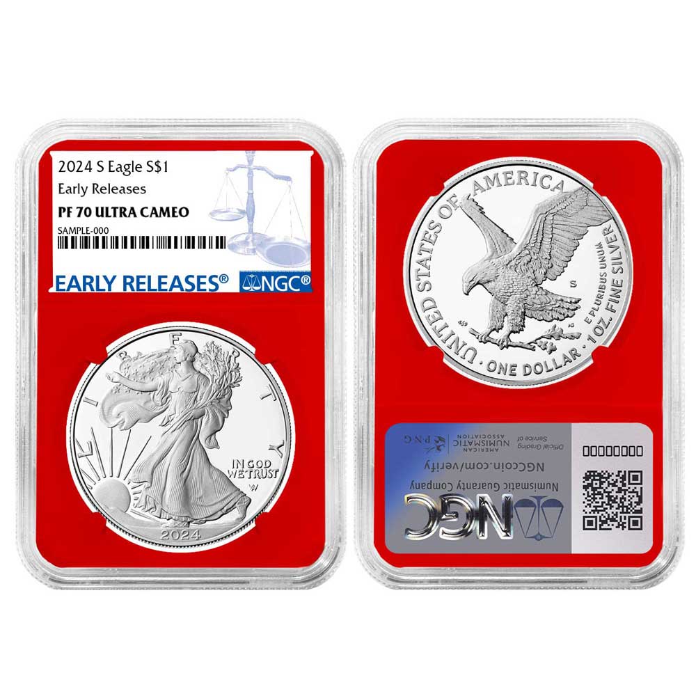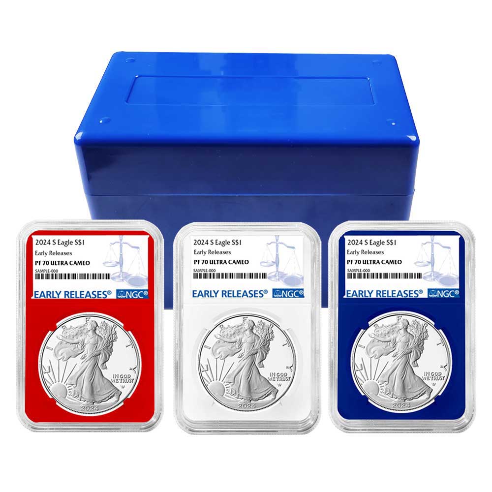 2024-S Proof $1 American Silver Eagle 3pc Set NGC PF70UC ER Blue Label Red White Blue