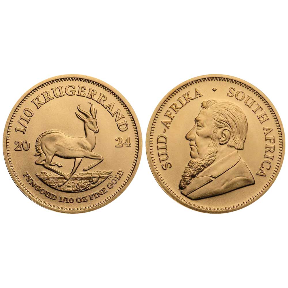 The first ever gold bullion coin offered as a means for private ownership of gold was introduced in 1967, the 1oz 22-karat gold (.9167) South African Krugerrand. These copper-gold alloy coins were also the first bullion coins issued a legal tender status. However, there is no face-value denomination attributed to the coin itself. Fashioned by Coert Steynberg, the reverse of the coin depicts a springbok antelope, the national animal of South Africa. The obverse displays an effigy of Paul Kruger, President of the South African Republic, from 1883 until 1900. During his presidency discovery of the first gold fields in the Witwatersrand area of Johannesburg was made, resulting in the establishment of a national mint. These gold bullion coins are minted today in 1 oz, 1/2 oz, 1/4 oz, and 1/10 oz options.