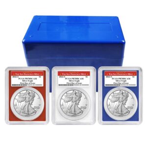 The American Silver Eagle is considered one of the most popular coins worldwide. The creation of these iconic 1 Troy oz of .999 fine silver coins was authorized through the Liberty Coin Act of 1985, and production began in 1986. Known to many as the official bullion coin of the United States, a redesign was introduced by the US Mint in 2021. The original obverse design, based on Adolph A. Weinman’s 1916 “Walking Liberty” half dollar, has been updated with the help of modern technology. Now a closer reflection of Weinman’s original design, the obverse includes the addition of the traditional artist’s mark on the coin itself. As with the obverse, the reverse of the Silver Eagle also received an update in design. Before the summer of 2021, the design was that of the heraldic eagle of the United States, which was created by the former Chief Engraver of the United States Mint, John Mercanti. This design features an American bald eagle behind a heraldic shield with arrows and an olive branch in its talons. The new reverse design, also known as “Eagle Landing,” shows an eagle approaching a landing, carrying an oak branch to add to a nest. This new reverse design was created by one of the U.S. Mint’s Artistic Infusion Program designers, Emily Damstra.