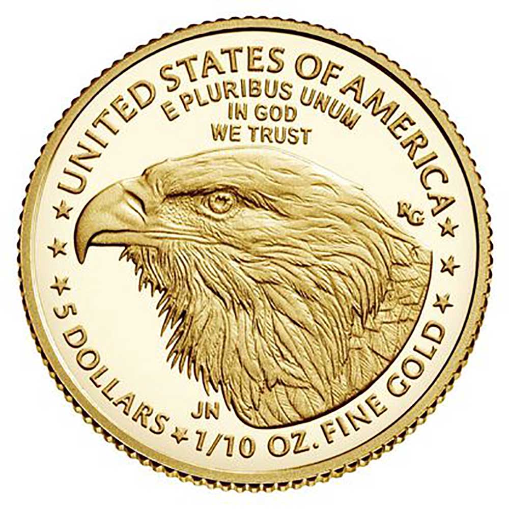 In 2021 United States Mint Artistic Infusion Program designer Jennie Norris created the redesign for the reverse of these coins. This new design is referred to as “Eagle Portrait” and portrays an eagle bust. The American Gold Eagle is offered in 4 sizes, 1 oz, 1/2 oz, 1/4 oz and 1/10 oz, making it popular amongst collectors seeking to add Gold Eagles to their collections.