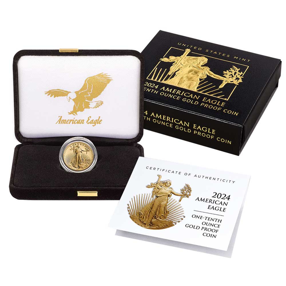 2024-W Proof $5 American Gold Eagle 1/10 oz, Box, OGP & COA