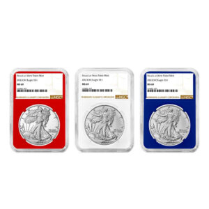 The American Silver Eagle is considered one of the most popular coins worldwide. The creation of these iconic 1 Troy oz of .999 fine silver coins was authorized through the Liberty Coin Act of 1985, and production began in 1986. Known to many as the official bullion coin of the United States, a redesign was introduced by the U.S. Mint in 2021. The original obverse design, based on Adolph A. Weinman’s 1916 “Walking Liberty” half dollar, has been updated with the help of modern technology. Now a closer reflection of Weinman’s original design, the obverse includes the addition of the traditional artist’s mark on the coin itself. As with the obverse, the reverse of the Silver Eagle also received an update in design. Before the summer of 2021, the design was that of the heraldic eagle of the United States, which was created by the former Chief Engraver of the United States Mint, John Mercanti. This design features an American bald eagle behind a heraldic shield with arrows and an olive branch in its talons. The new reverse design, also known as “Eagle Landing,” shows an eagle approaching a landing, carrying an oak branch to add to a nest. One of the U.S. Mint’s Artistic Infusion Program designers, Emily Damstra, created this new reverse design.