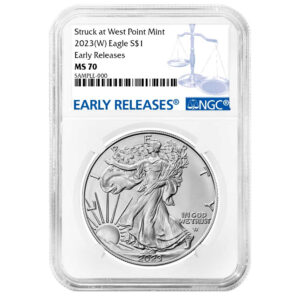 The American Silver Eagle is considered one of the most popular coins worldwide. The creation of these iconic 1 Troy oz of .999 fine silver coins was authorized through the Liberty Coin Act of 1985, and production began in 1986. Known to many as the official bullion coin of the United States, a redesign was introduced by the U.S. Mint in 2021. The original obverse design, based on Adolph A. Weinman’s 1916 “Walking Liberty” half dollar, has been updated with the help of modern technology. Now a closer reflection of Weinman’s original design, the obverse includes the addition of the traditional artist’s mark on the coin itself. As with the obverse, the reverse of the Silver Eagle also received an update in design. Before the summer of 2021, the design was that of the heraldic eagle of the United States, which was created by the former Chief Engraver of the United States Mint, John Mercanti. This design features an American bald eagle behind a heraldic shield with arrows and an olive branch in its talons. The new reverse design, also known as “Eagle Landing,” shows an eagle approaching a landing, carrying an oak branch to add to a nest. One of the U.S. Mint’s Artistic Infusion Program designers, Emily Damstra, created this new reverse design.