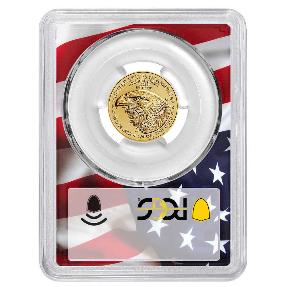 2025 $10 American Gold Eagle 1/4 oz PCGS MS69 FS Flag Frame
