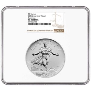Description: The 2025 Superman DC Comics 2.5 oz Silver Medal captures the heroic essence of Superman and serves as a captivating addition to any collection. Struck in high-quality silver, this medal’s intricate design and significant weight make it a standout piece for both fans of superhero lore and discerning collectors. Add this stunning piece to your collection and proudly display the strength and resolve of the Man of Steel.