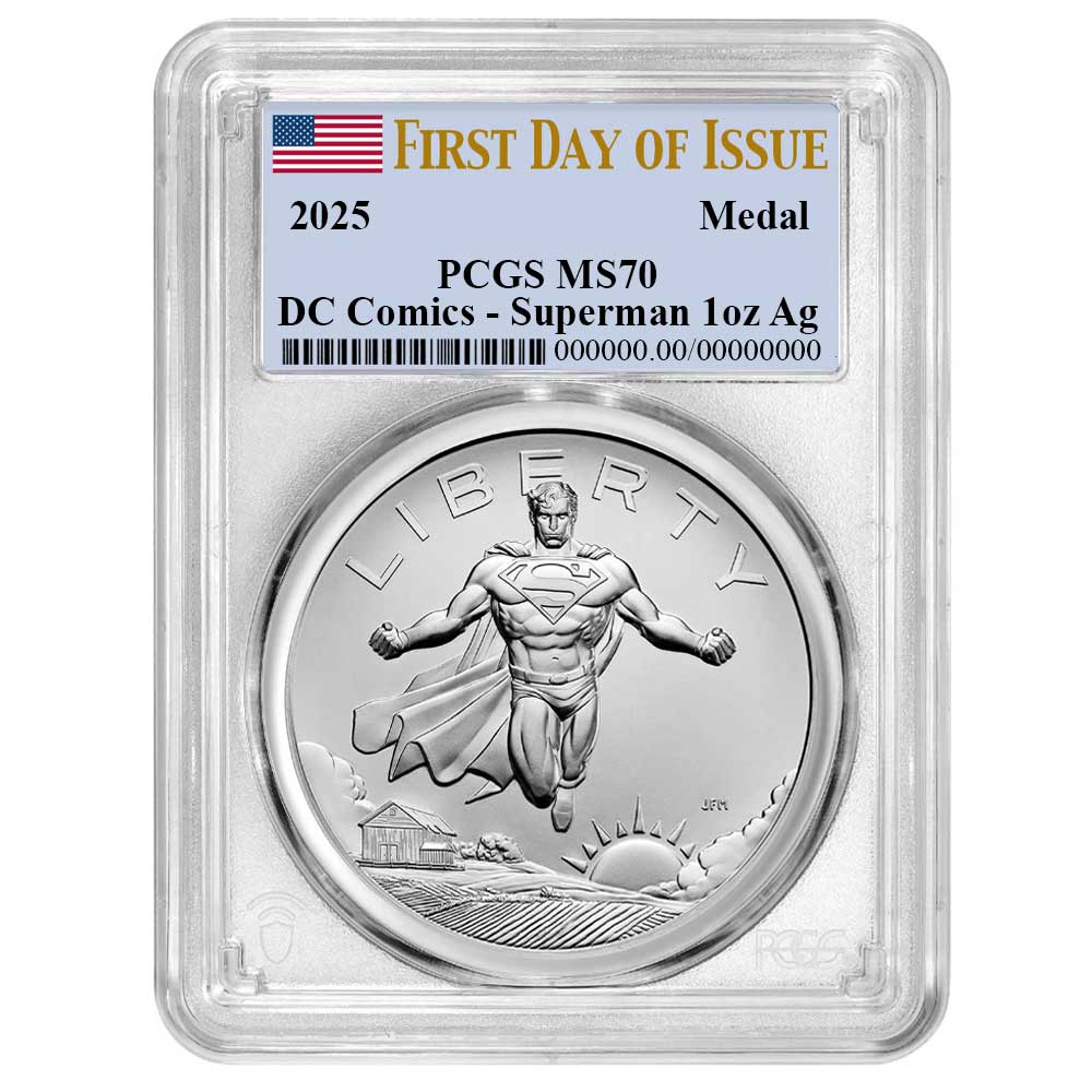 Product History: The 2025 Superman DC Comics 1 oz Silver Medal is a celebration of one of the most iconic superheroes in pop culture history. It pays homage to the enduring legacy of the beloved character, Superman, who first debuted in Action Comics #1 in 1938. This release marks yet another milestone in the character’s immortalization through the art of coin and medal production.