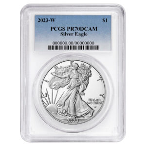 The American Silver Eagle is considered one of the most popular coins worldwide. The creation of these iconic 1 Troy oz of .999 fine silver coins was authorized through the Liberty Coin Act of 1985, and production began in 1986. Known to many as the official bullion coin of the United States, a redesign was introduced by the U.S. Mint in 2021. The original obverse design, based on Adolph A. Weinman’s 1916 “Walking Liberty” half dollar, has been updated with the help of modern technology. Now a closer reflection of Weinman’s original design, the obverse includes the addition of the traditional artist’s mark on the coin itself. As with the obverse, the reverse of the Silver Eagle also received an update in design. Before the summer of 2021, the design was that of the heraldic eagle of the United States, which was created by the former Chief Engraver of the United States Mint, John Mercanti. This design features an American bald eagle behind a heraldic shield with arrows and an olive branch in its talons. The new reverse design, also known as “Eagle Landing,” shows an eagle approaching a landing, carrying an oak branch to add to a nest. One of the U.S. Mint’s Artistic Infusion Program designers, Emily Damstra, created this new reverse design.