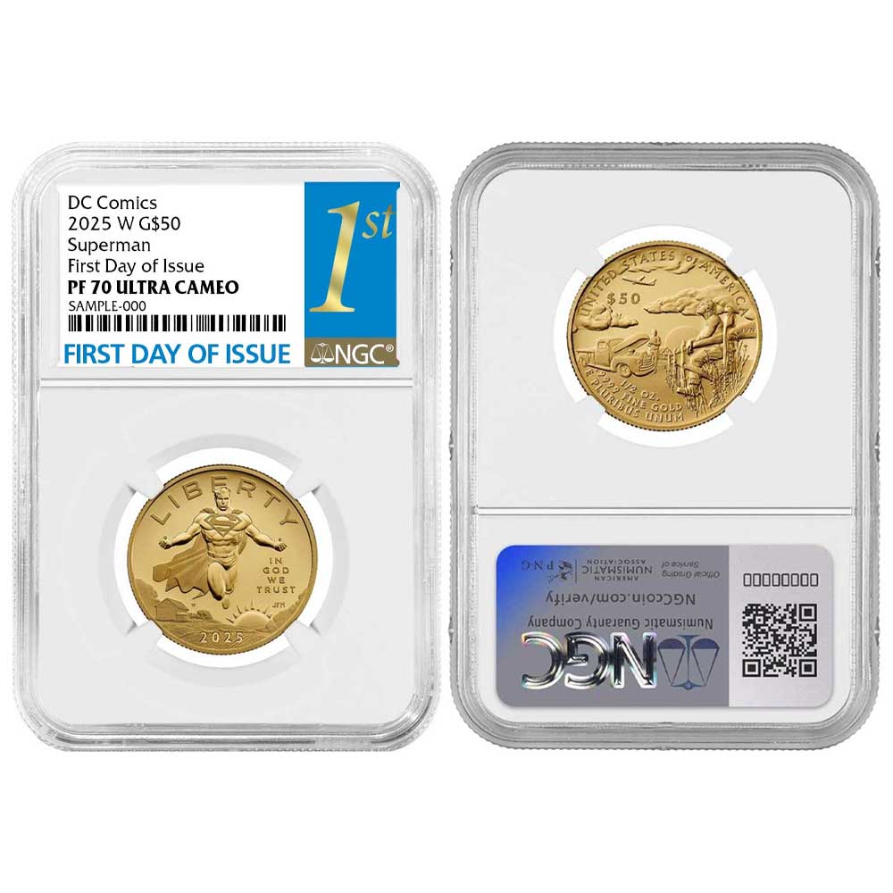 2025-W Proof $50 Superman DC Comics 1/2 oz Gold Coin NGC PF70UC FDI First Label