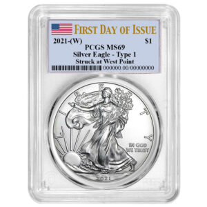 The American Silver Eagle is considered one of the most popular coins worldwide. The creation of these iconic 1 Troy oz of .999 fine silver coins was authorized through the Liberty Coin Act of 1985, and production began in 1986. Known to many as the official bullion coin of the United States, a redesign was introduced by the U.S. Mint in 2021. The original obverse design, based on Adolph A. Weinman’s 1916 “Walking Liberty” half dollar, has been updated with the help of modern technology. Now a closer reflection of Weinman’s original design, the obverse includes the addition of the traditional artist’s mark on the coin itself. As with the obverse, the reverse of the Silver Eagle also received an update in design. Before the summer of 2021, the design was that of the heraldic eagle of the United States, which was created by the former Chief Engraver of the United States Mint, John Mercanti. This design features an American bald eagle behind a heraldic shield with arrows and an olive branch in its talons. The new reverse design, also known as “Eagle Landing,” shows an eagle approaching a landing, carrying an oak branch to add to a nest. One of the U.S. Mint’s Artistic Infusion Program designers, Emily Damstra, created this new reverse design.